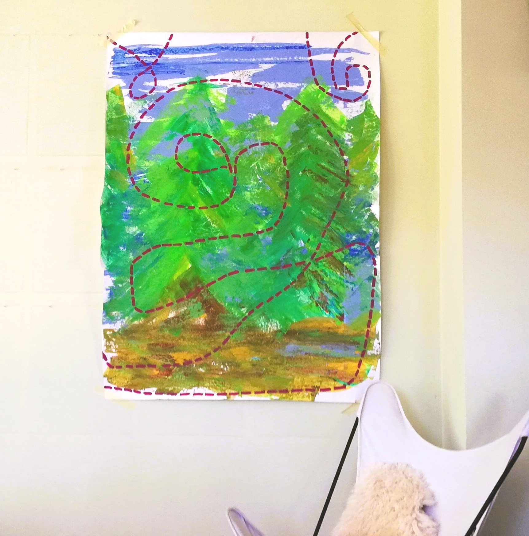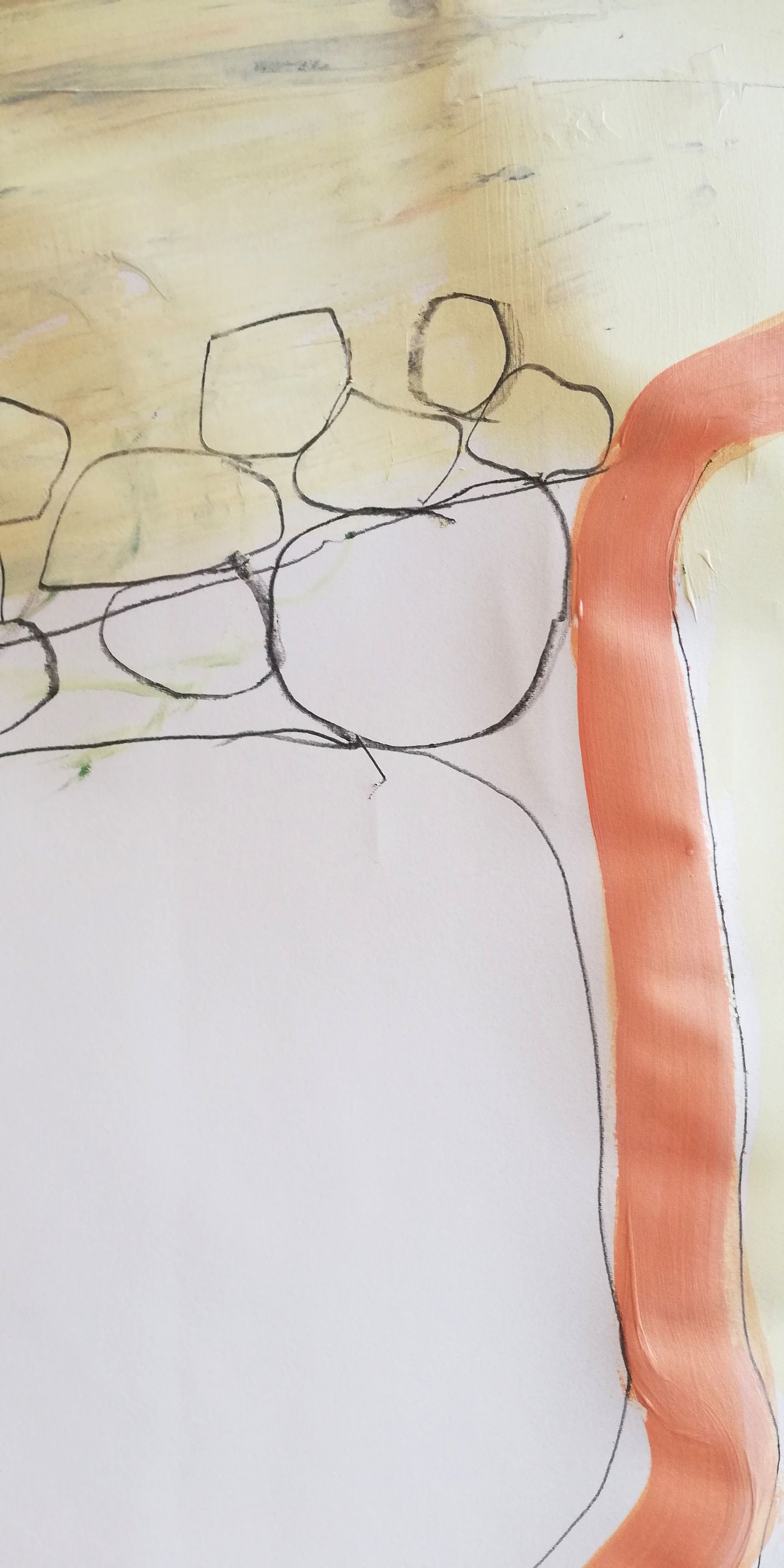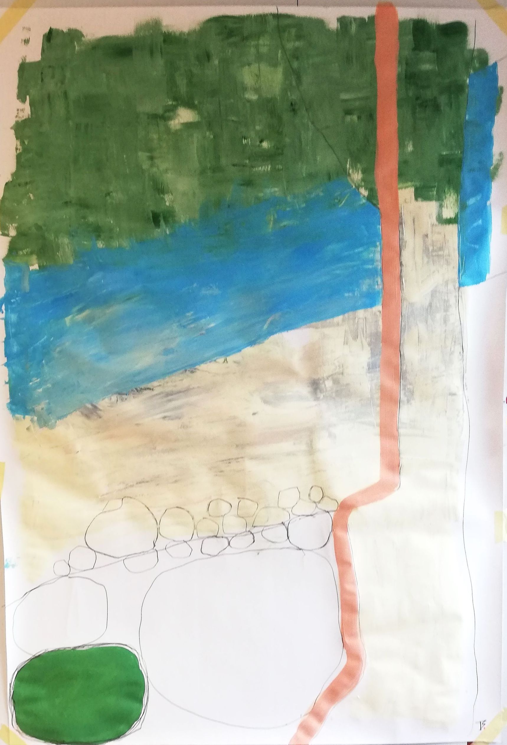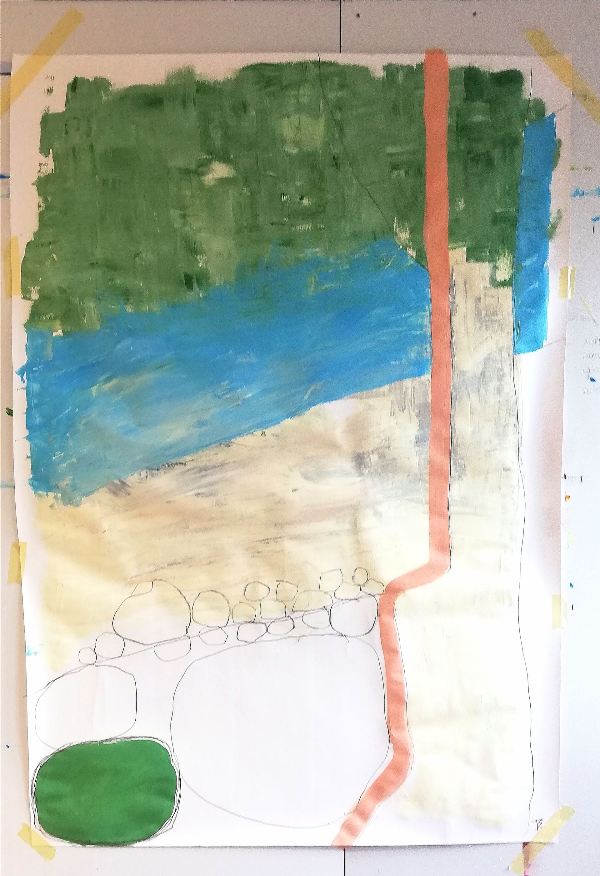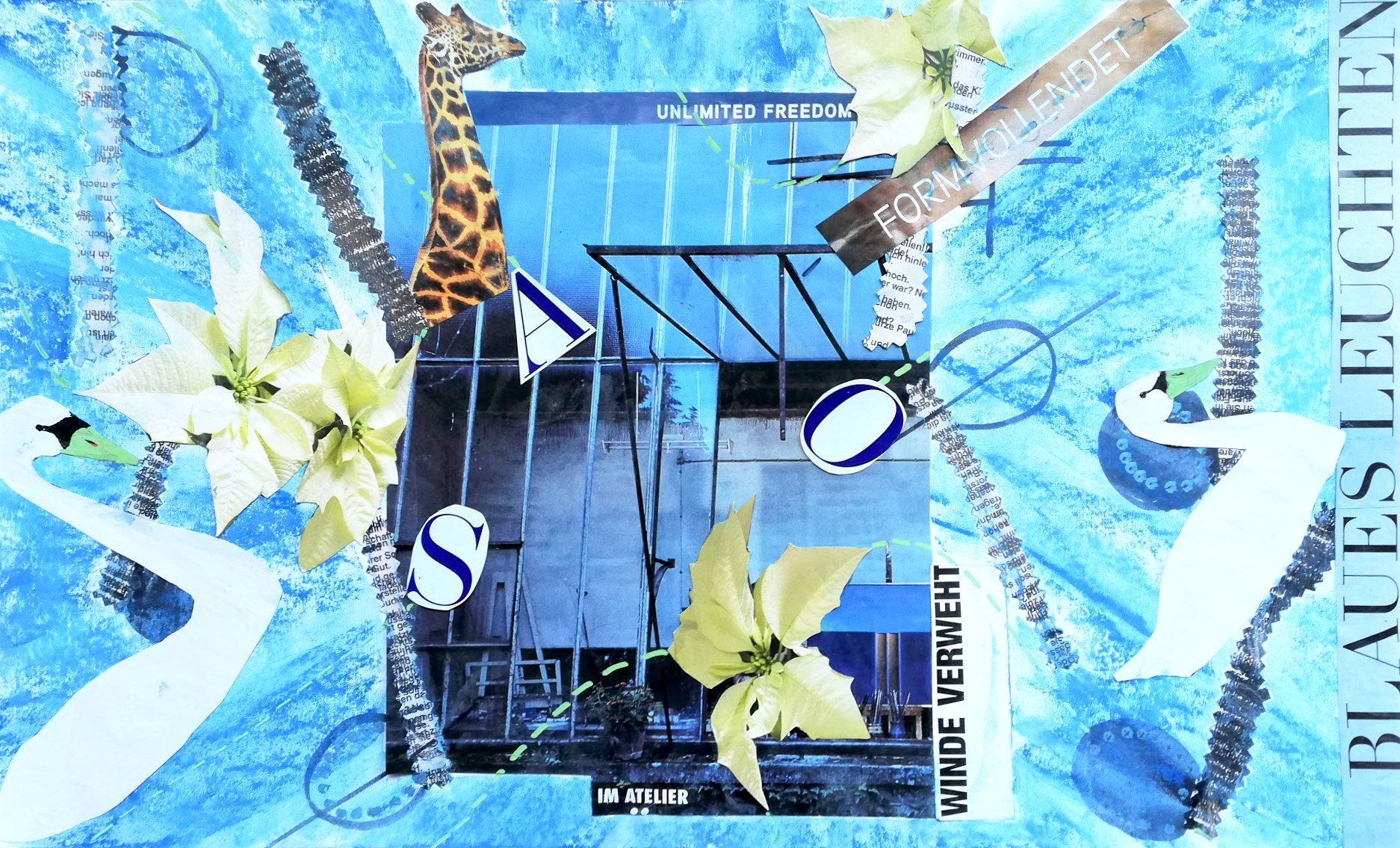 120x60cm Acryl auf geteilten Papier, geschnittene Textstellen, Buchstaben & Guache